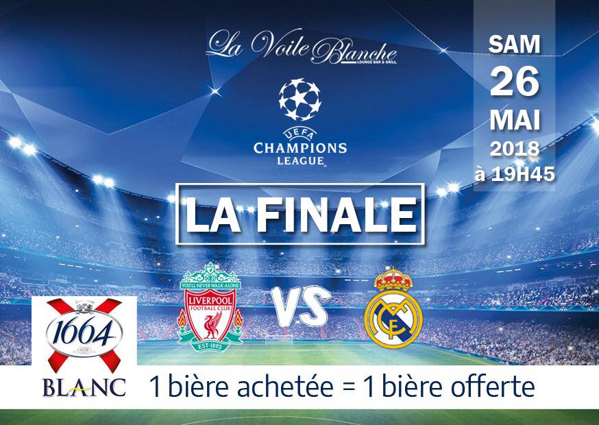Evénements > FINALE CHAMPIONS LEAGUE Retour à la liste FINALE CHAMPIONS LEAGUE Cet événement est terminé 26 mai 2018 à 19 h 45 Détails Date : 26 mai 2018 Heure: 19 h 45 Catégorie de l'événement: Sport Voir la page Infos A partir de 19h45, venez regarder la finale de la Champions League à la Voile Blanche ! Liverpool vs Real de Madrid Pour cette occasion, 1 bière achetée = 1 bière offert (1664) + Google Agenda+ Exportation iCal Lieu La Voile Blanche Côte Sauvage, Pointe-Noire, Congo + Google Map