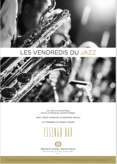 Evénements > Les Vendredis du Jazz Retour à la liste Les Vendredis du Jazz Cet événement est terminé 7 avril 2017 à 19 h 30 Détails Date : 7 avril 2017 Heure: 19 h 30 Catégorie de l'événement: Musique Voir la page Infos Tous les vendredis, venez profiter d’un son authentique au Pefaco Hôtel Maya Maya pour un moment exceptionnelle ! Avec Freddy Mabanza & Wakassa Group de 19h30 à 22h30. + Google Agenda+ Exportation iCal Lieu Pefaco Hôtel Maya Maya Boulevard Denis Sassou Nguesso, face à l'aéroport, Brazzaville, Congo + Google Map Téléphone : 056 048 030 Site Web : http://www.pefacohotelmayamaya.com/