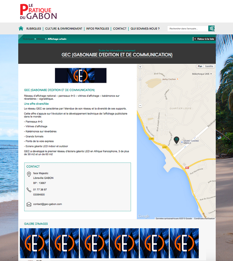 La bannière de votre site qui apparaîtra dans la fiche détaillée. Elle est identique à celle de la liste des rubriques (texte de 1000 caractères et 10 photos maximum).